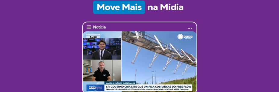 Durante o alto fluxo nas estradas no Carnaval, o Diretor de Marketing e Comercial da Move Mais, Petrus Moreira, concedeu entrevista à Record News para comentar os impactos do novo sistema de pedágio eletrônico Free Flow nas rodovias estaduais de São Paulo.